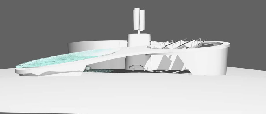 Flymove has presented the first concept of the revolutionary POE Station (Point of Energy), also in the Mobile version, unique in its design, operation and technical characteristics. It has been conceived and designed in various versions and sizes to reach levels of building and environmental impact close to zero, since it uses Bio materials and recycles all waste and emissions. The station, in fact, has been designed to independently generate the greatest possible amount of renewable energy with which the batteries will then be charged. This allows the station to provide support to land and air electric vehicles, both those that use rapid charging stations and those equipped with BSS. The POE station will also be able to produce hydrogen "on demand" for specific vehicles and will be able to store energy in fuel cells. Finally, a special version of the POE station will be the only one of its kind to allow the landing of VTOL passenger drones.